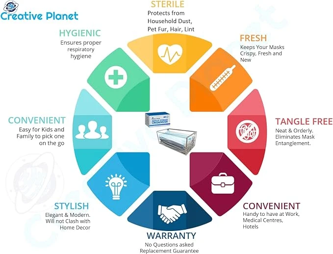 حفظ صحي للكمامات: صندوق أكريليك شفاف يوفر حلاً نظيفاً ومنظماً لحفظ الكمامات وحمايتها عند عدم الاستخدام. تصميم شفاف وأنيق: يسمح الجسم الأكريليكي برؤية الكمامات بسهولة دون فتح العلبة. إغلاق محكم: يمنع وصول الغبار والأوساخ ويحافظ على نقاء الكمامات. مناسب لكمامات برو كي إف ٩٤: مصمم ليلائم مقاس كمامات برو كي إف ٩٤. محمول وصغير الحجم: سهل الحمل داخل الحقيبة أو الجيب ليبقى الكمام جاهزاً للاستخدام.