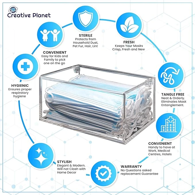 صندوق حفظ الكمامات أكريليك شفاف — متوافق مع برو كي إف ٩٤